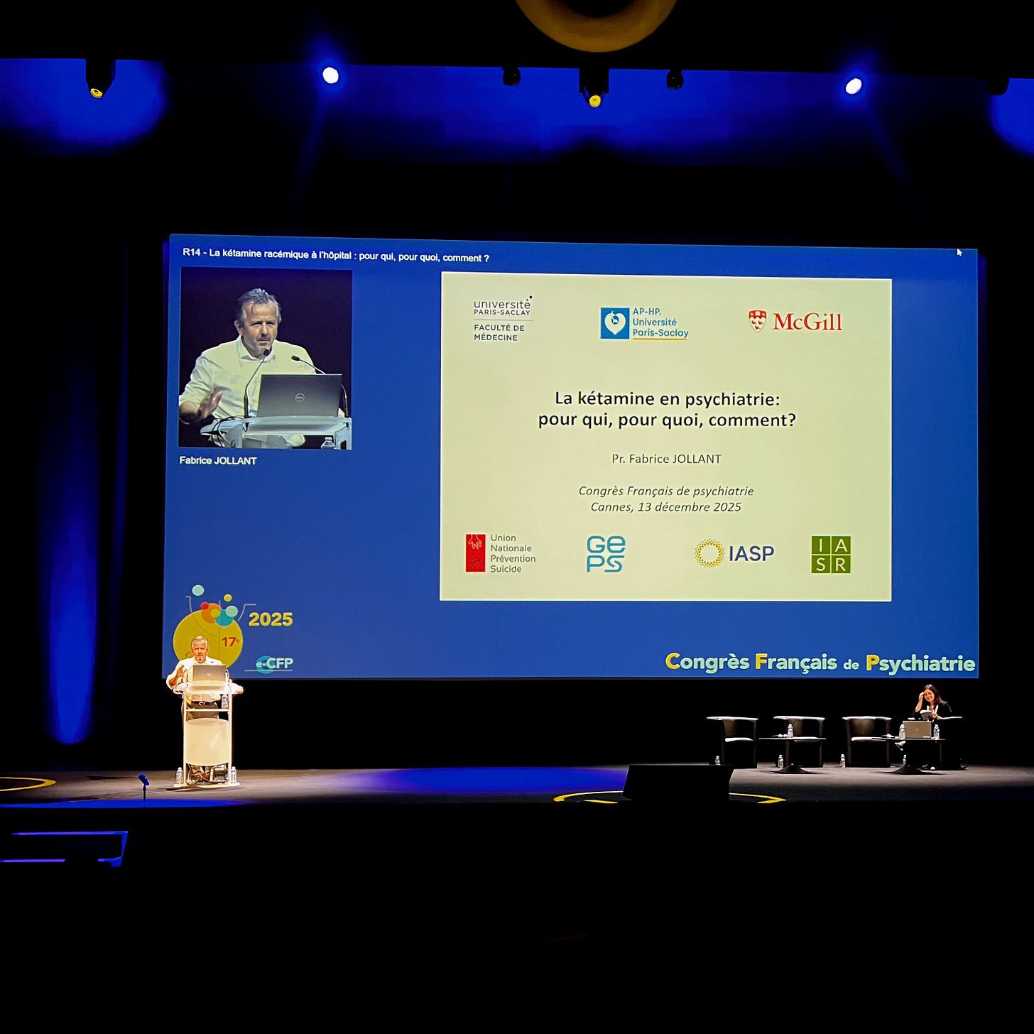 Samedi matin à 8h, je ratais le lever du soleil pour aller écouter le professeur Fabrice Jollant pointer du doigt un autre retard français : celui de l’usage de la kétamine, en particulier dans le traitement des crises suicidaires et de la dépression résistante. Une présentation très intéressante, doublée d’une recommandation de traitement en quelques séances d’intraveineuse à l’efficacité redoutable… ou semble-t-il ! Car la veille même, une adhérente me racontait les expériences difficiles de plusieurs connaissances ayant été perfusées à la kétamine à l’hôpital, sans soutien psychologique (le modèle proposé par le professeur Jollant étant totalement biomédical, les séances se font en hôpital de jour sur une période de 3h ; le•a patient•e est laissé dans une chambre — au mieux — pendant qu’un•e infirmier•e prend ses constantes de temps à autre). Un excellent sujet à creuser dans un prochain billet, ayant récemment rencontré à Bruxelles un représentant finlandais d’une clinique de kétamine ouverte avec le soutien du gouvernement…
